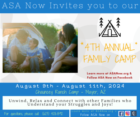Join us at Chauncey Ranch Camp in Mayer, AZ, for ASA Now's 4th Annual Family Camp taking place August 9th - August 11th, 2024. Being foster and adoptive caregivers can sometimes be challenging, and this camp is designed to provide a supportive community for kinship, foster, and adoptive parents who understand those challenges. It's a unique opportunity to connect with fellow caregivers, knowing that you're not alone in facing certain difficulties.