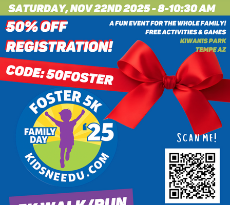 The need is great with nearly 10,000 children in Foster Care in Arizona. We understand not everyone is able to foster or adopt, but we can all play a part in helping children and families in need. That’s why we’re personally inviting you to Run a 5K to Help 10K foster kids. Join us for an amazing day of fun, fitness, and community.